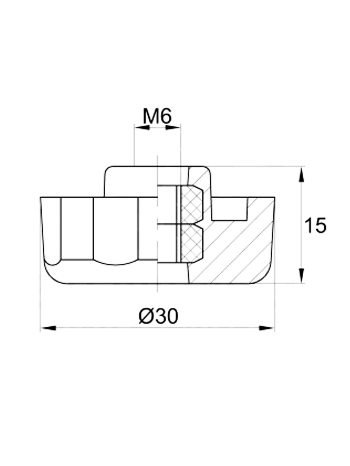 ✅ Компактные размеры. Диаметр рукоятки — 30 мм, резьба — M6, высота — 15 мм — не займёт много места, но обеспечит надёжную фиксацию.