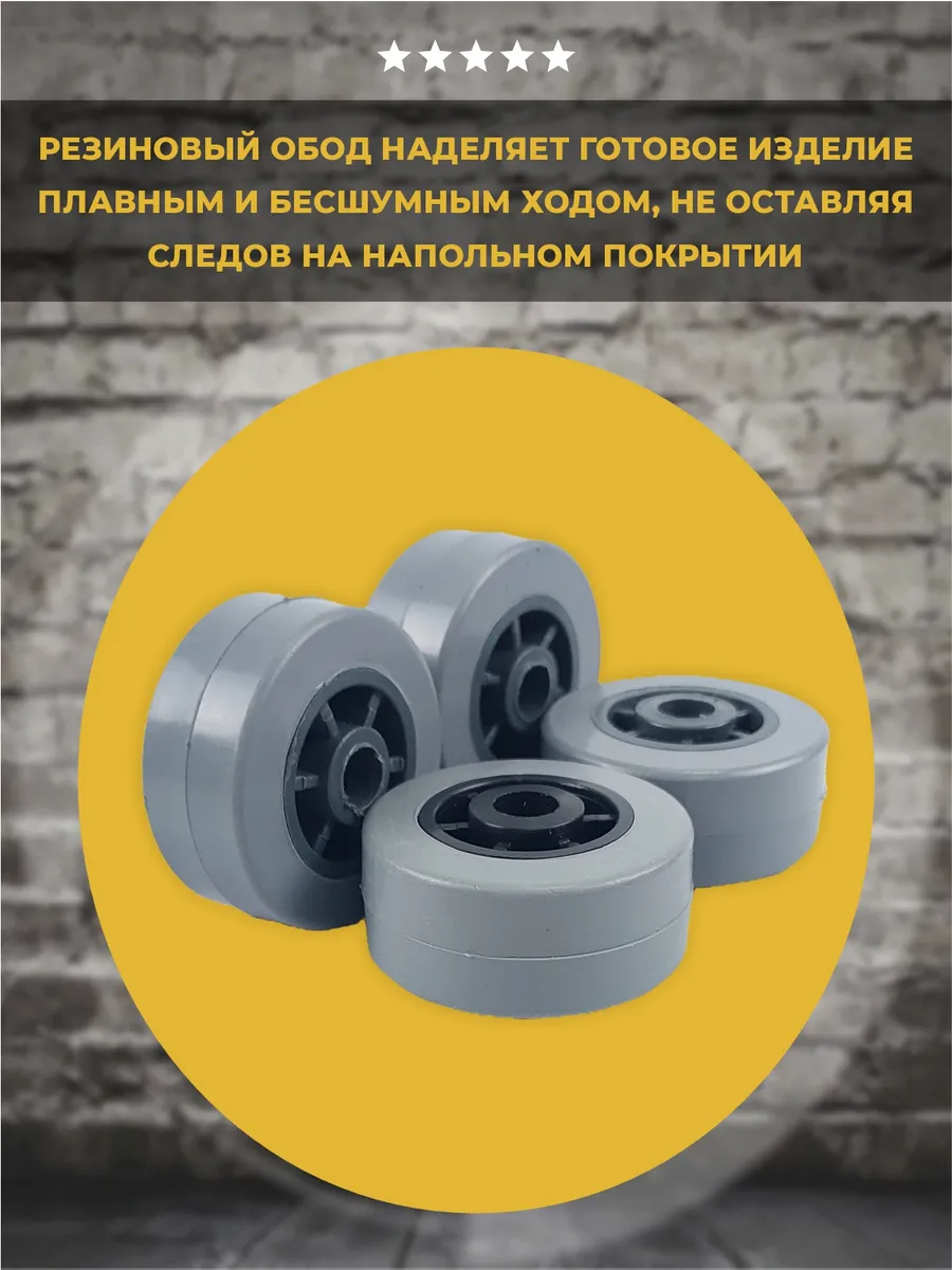 Колесо обрезиненное мебельное D50 c утопленной ступицей. Комплект:4 шт. Применяется данное колесо при изготовлении различных выкатных механизмов трансформации для мягкой мебели. За счет того, что снаружи колесо покрыто резиной, можно избежать повреждений напольных поверхностей при передвижении мебели или ее частей. Компания Lamel66 уже более 9 лет занимается производством и продажей мебельной фурнитуры и запчастей для диванов и кроватей. Понимая, насколько важны удобство и комфорт мебели для здоровья человека, мы используем только качественные материалы и механизмы. Заглянув на страницу нашего магазина, вы найдете фурнитуру для кроватей, фурнитуру для диванов: огромный выбор латодержателей, ламели, заглушки для мебели, пружины и зацепы, механизмы трансформации для мебели, колесные опоры и ножки для мебели.
