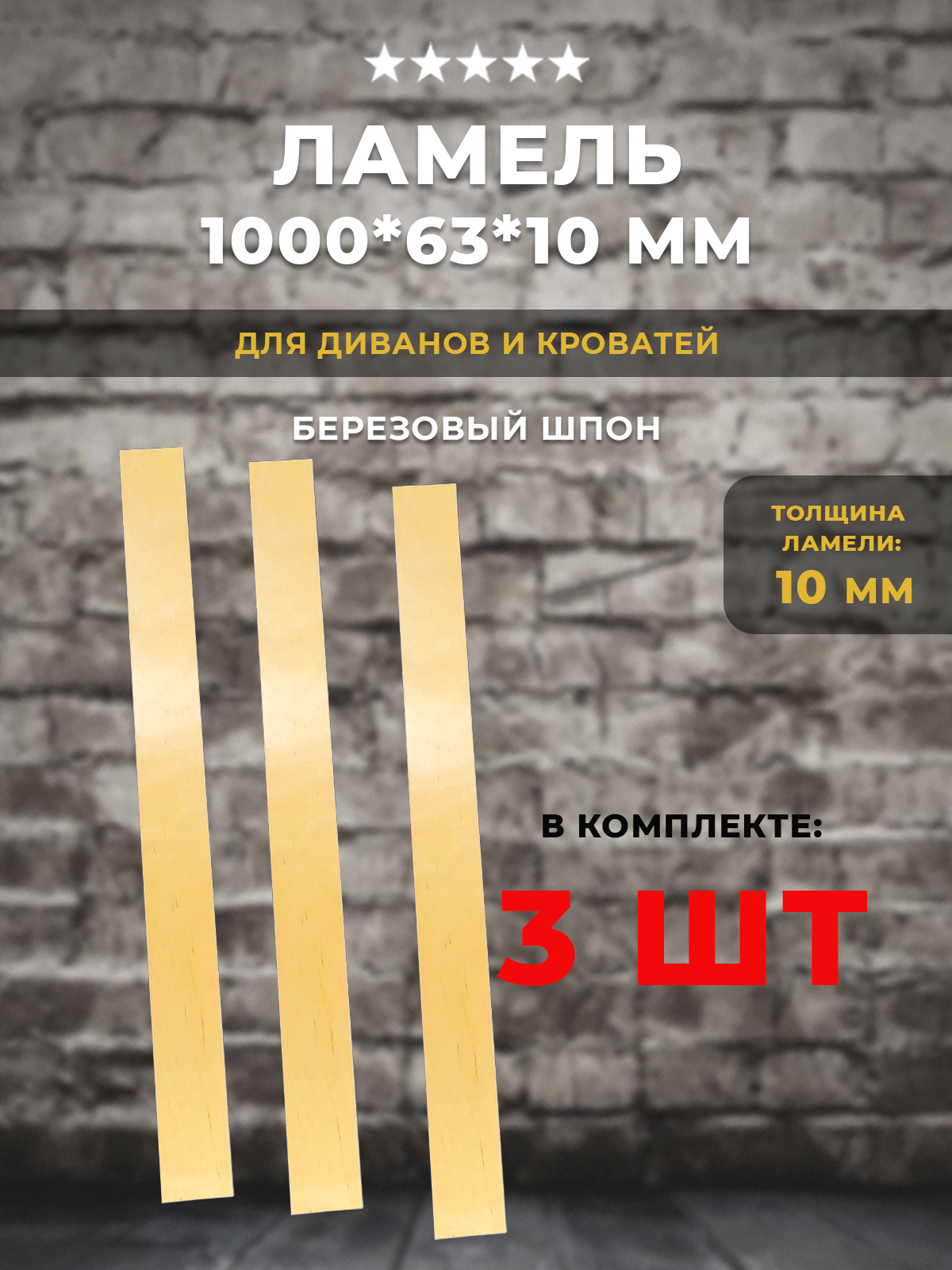 Ламель 1000*63*10 мм для диванов и кроватей с подходящими размерами. Комплект из трех штук.