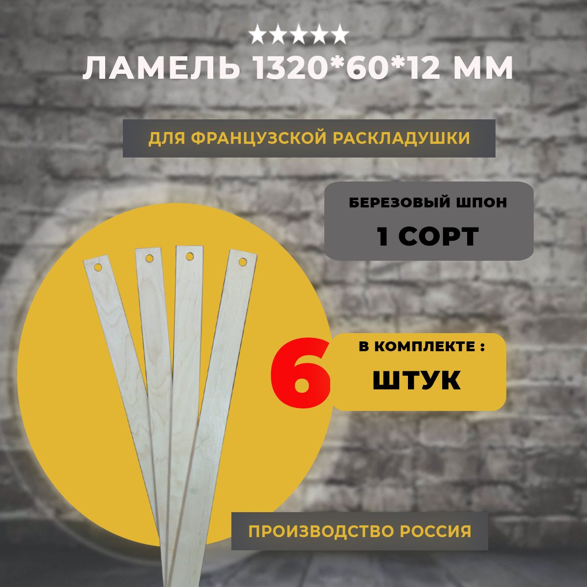 Ламель для французской и американской раскладушек размером 1320*60*12 мм. С отверстиями для латодержателей. Комплект - 6 шт.
