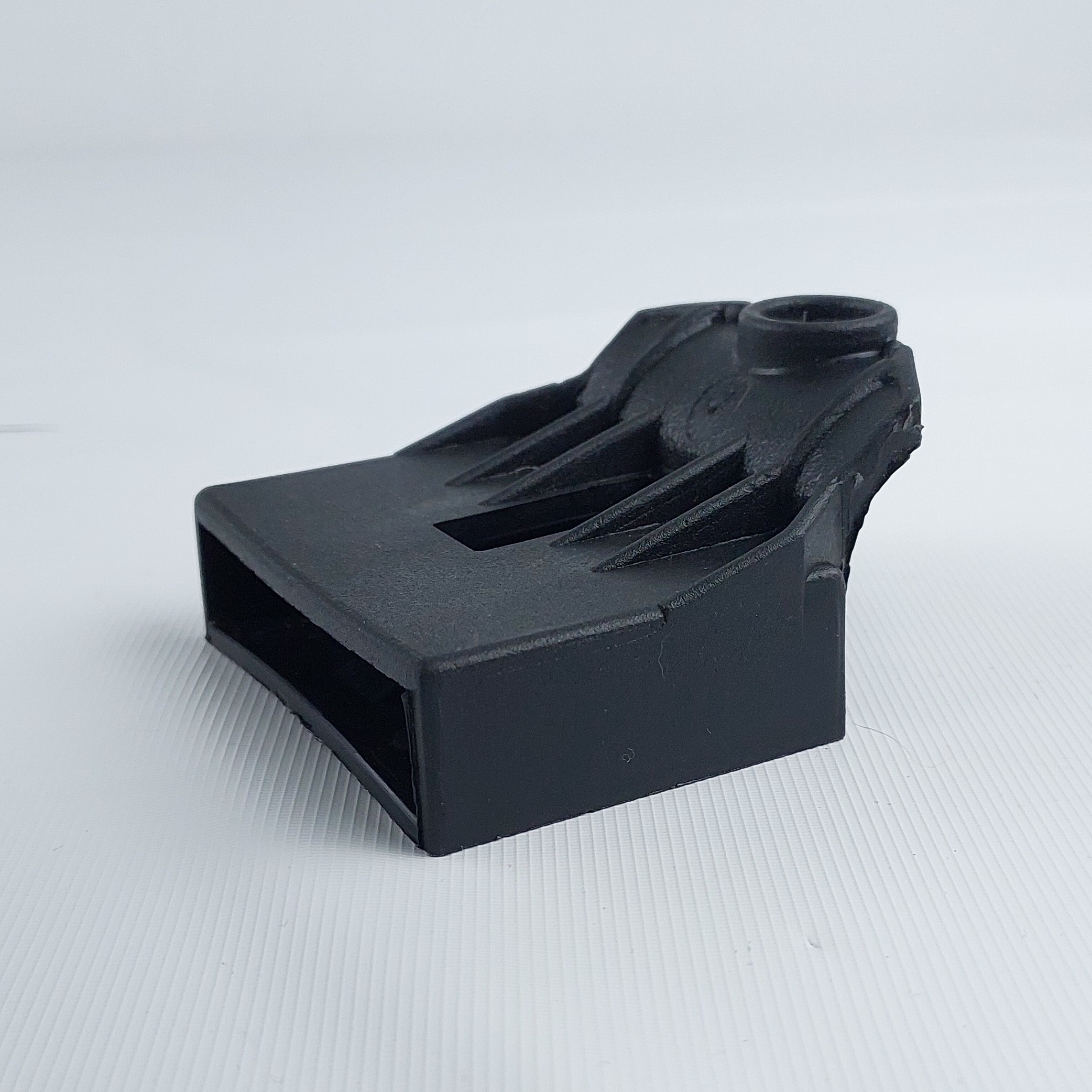 Выполнен из прочного твердого пластика.