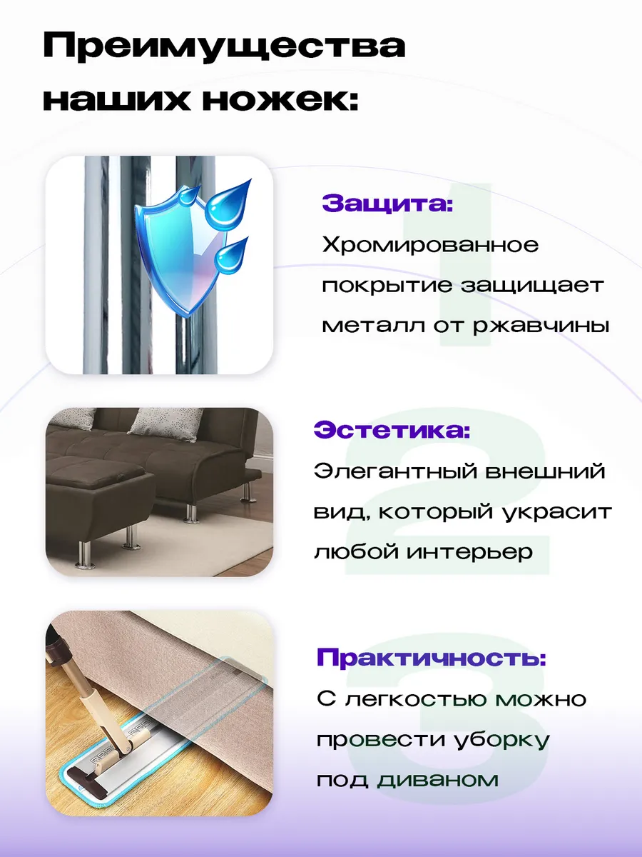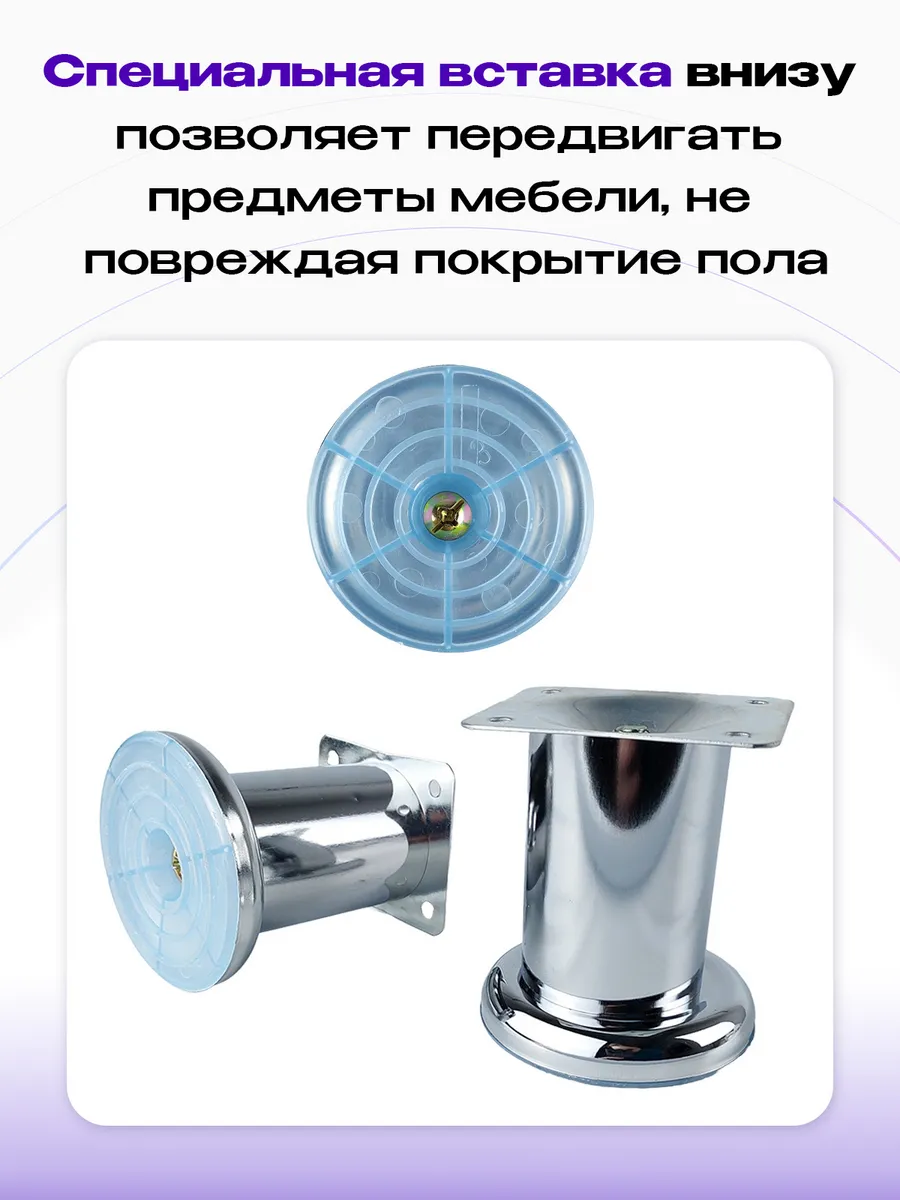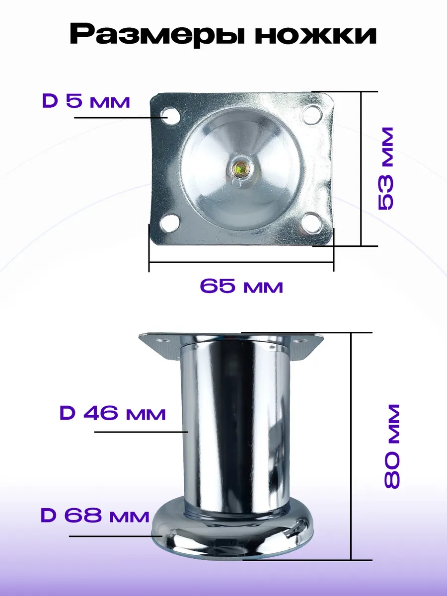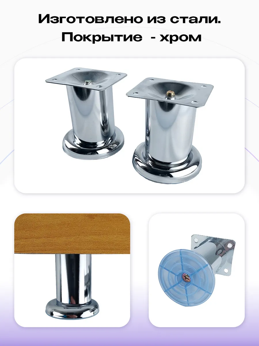 Нерегулируемая мебельная опора высотой 80 мм. Эти изящные хромированные опоры придадут вашей мебели стильный и завершенный облик. Визуально приподнимая предметы интерьера над полом, они создают ощущение легкости и воздушности. Благодаря сочетанию металла и пластика, эти ножки обеспечивают высокую прочность и устойчивость, сохраняя при этом бережное отношение к вашему напольному покрытию. С Mebelzap.ru ваша мебель прослужит долго, радуя вас каждый день!