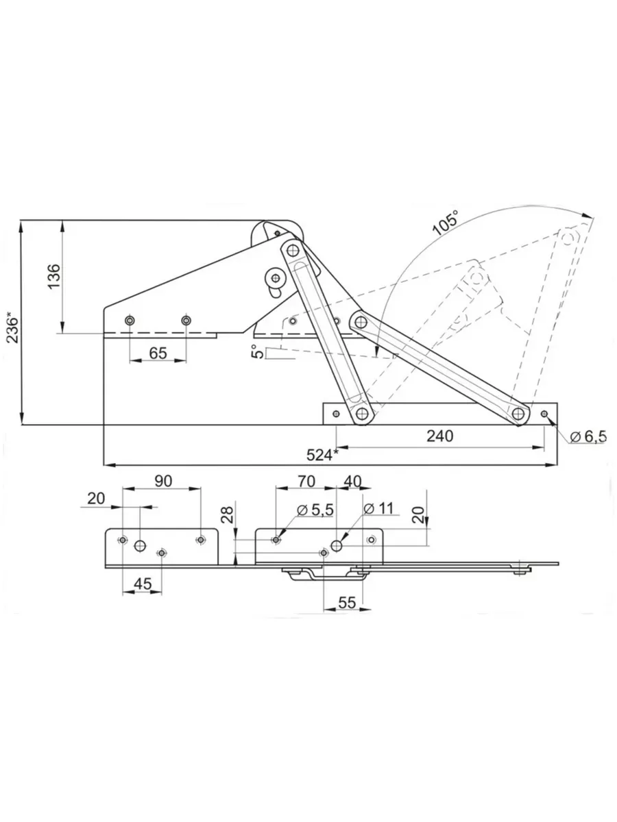 Механизм дивана 358 имеет две позиции: 1) спинка опущена - положение для сна 180 градусов, 2) спинка поднята 105 градусов - положение для сидения. После установки механизм полностью готов к использованию, "собачка" - функциональная часть механизма - уже смазана.
