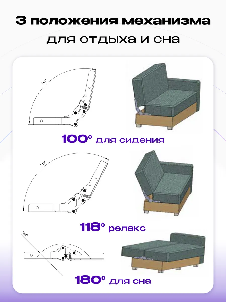 Преобразите свой диван и сделайте его максимально удобным! Представляем усиленный храповой механизм трансформации — идеальное решение для подъёма спинки дивана с зафиксированным местом для сидения. Почему этот механизм стоит выбрать?