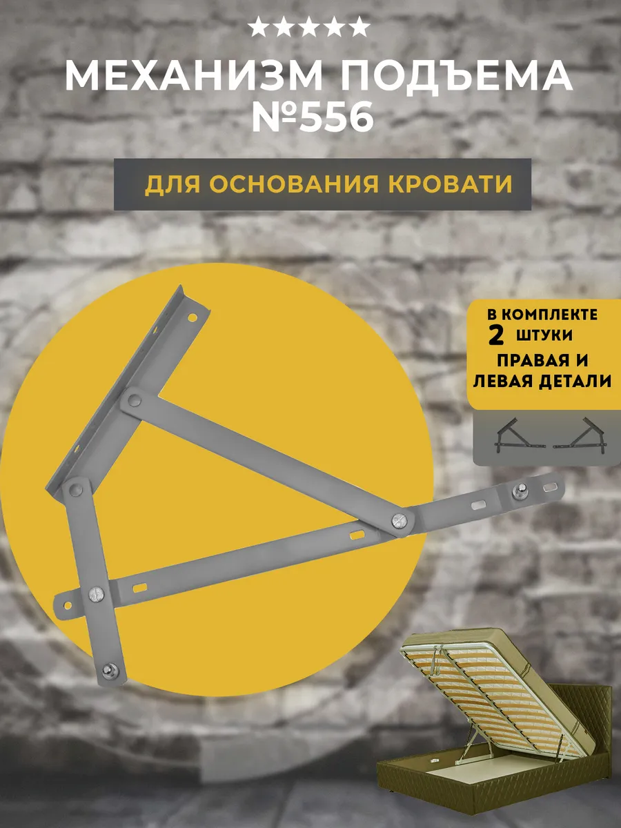 Механизм подъёма 556 — это комплект для подъёма основания кровати или спального места в диване, обеспечивающий удобный доступ к бельевому ящику. Он широко используется в мебельной промышленности благодаря своей надёжности и функциональности.