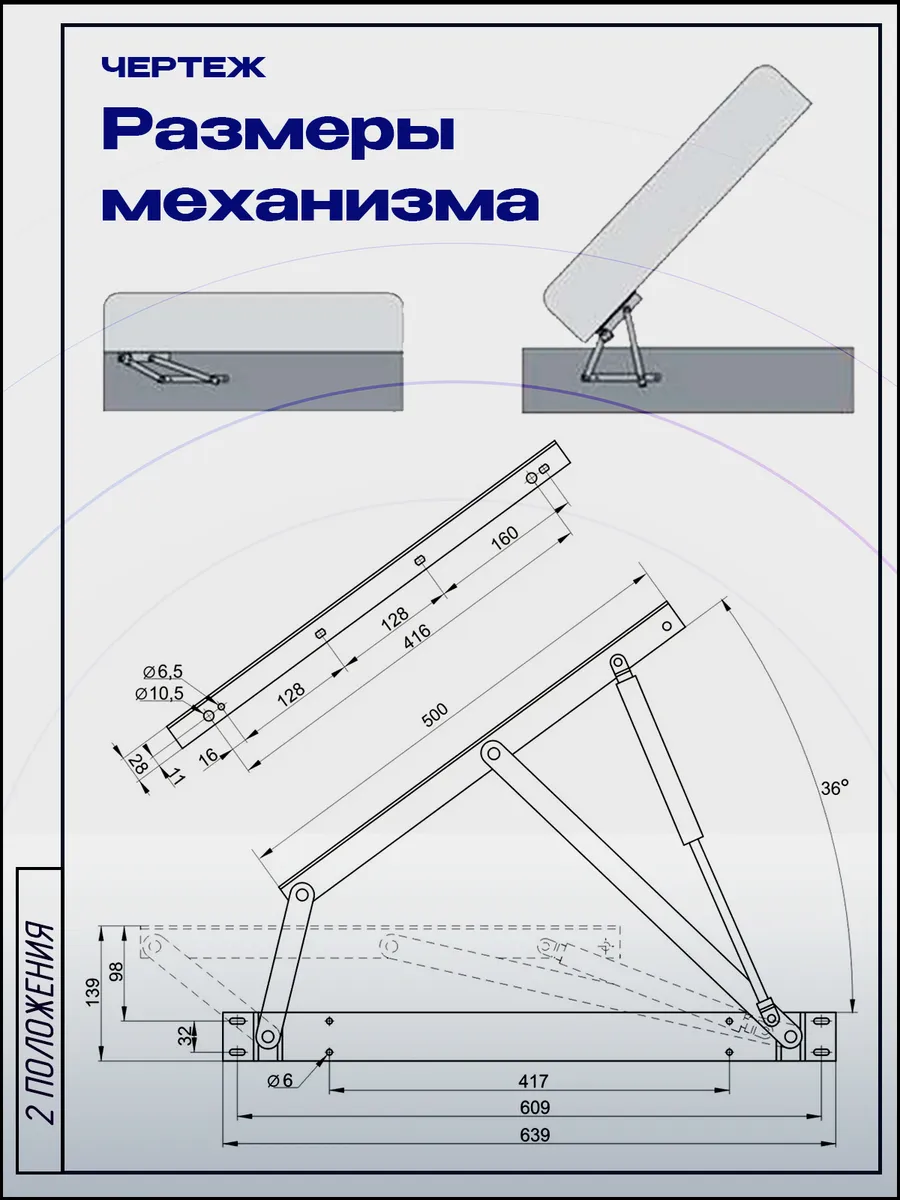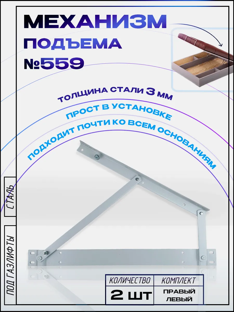 Механизм №559 превратит вашу мебель в систему умного хранения. Главные преимущества: Легкий подъем обеспечивают газлифты (приобретаются дополнительно) Надежность — прослужит долгие годы Универсальность — подходит практически для любых кроватей\диванов с коробом для хранения