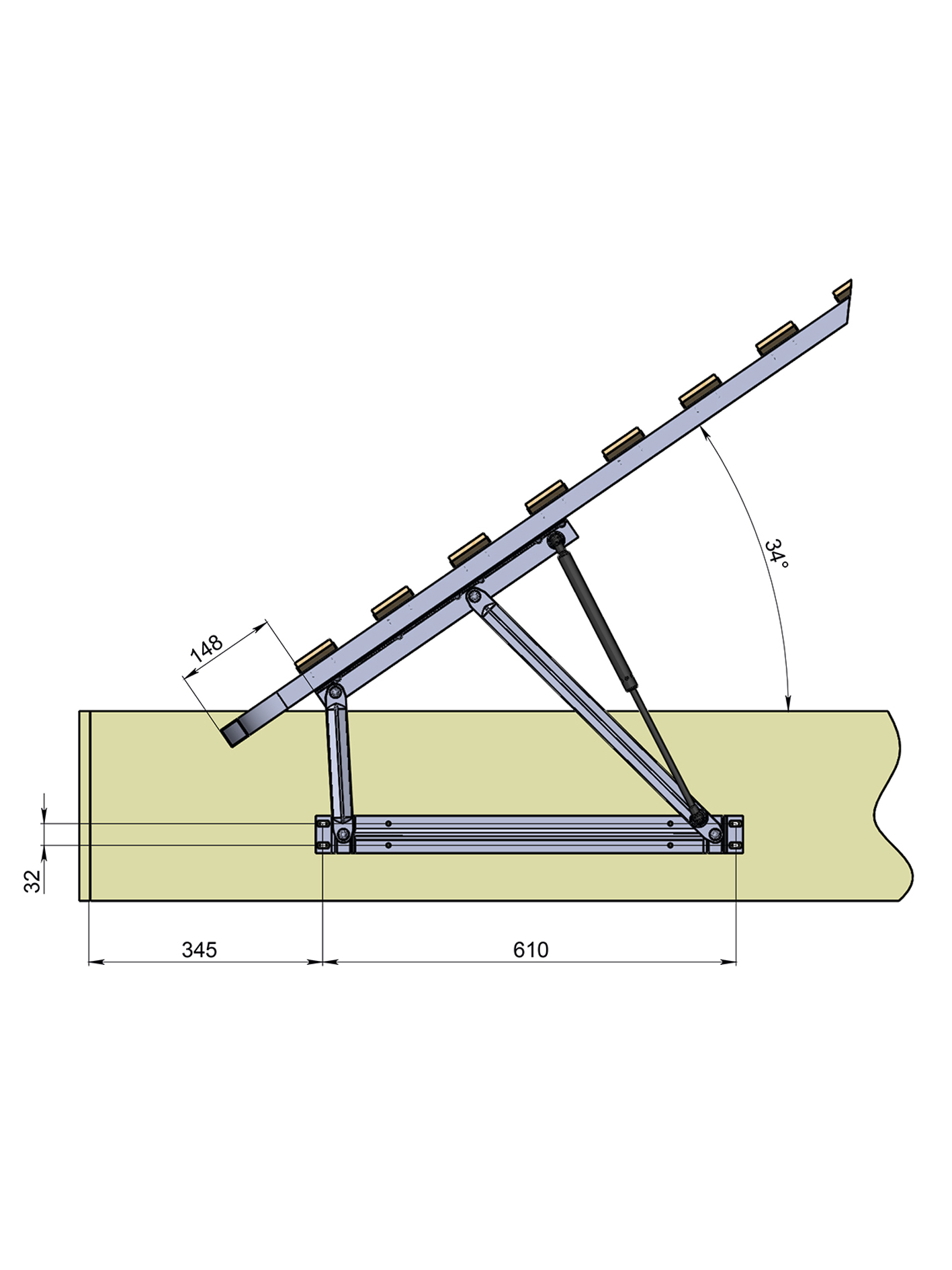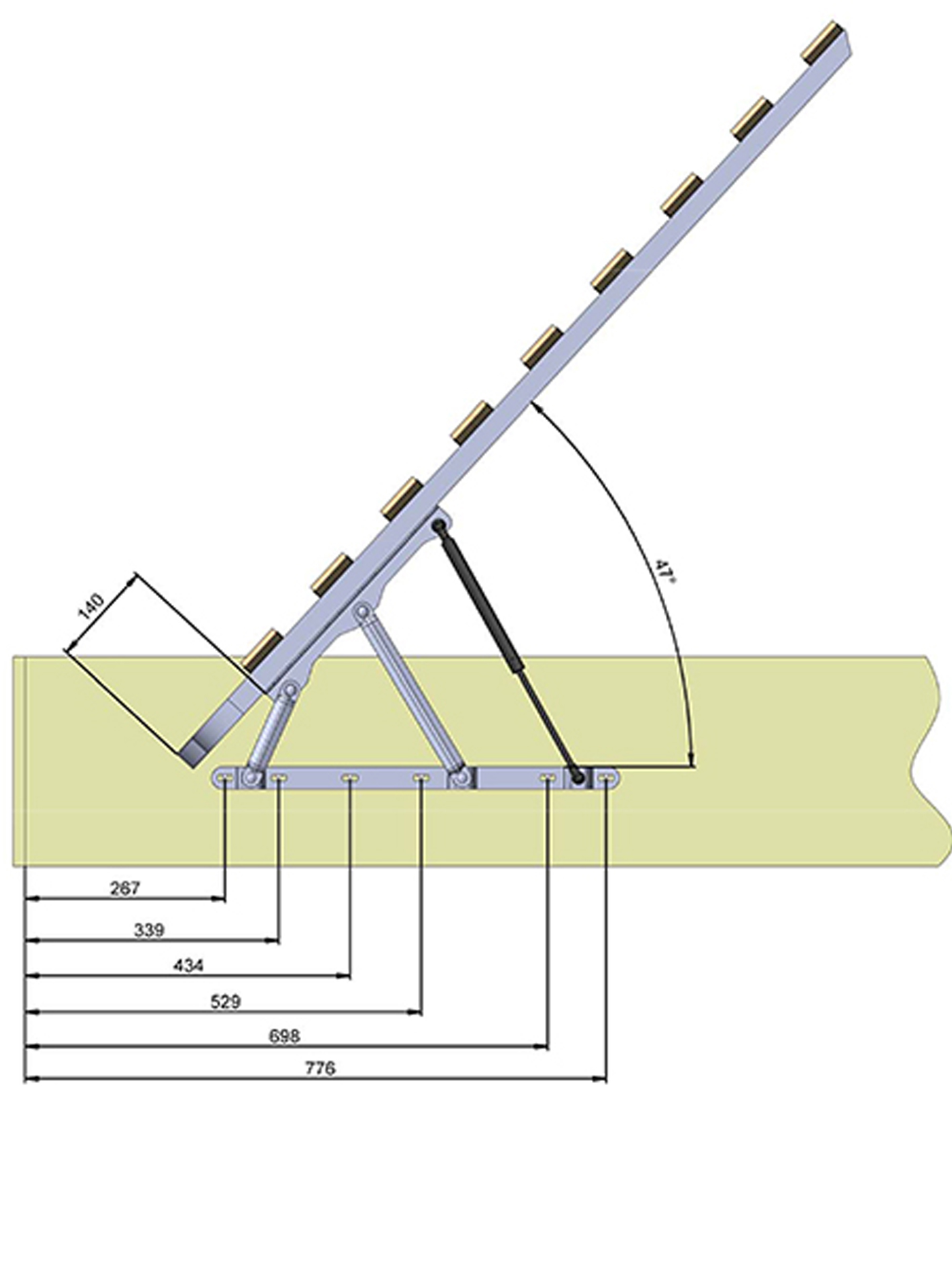 Угол подъема рамки основания 47 градусов для удобного доступа к бельевому коробу.