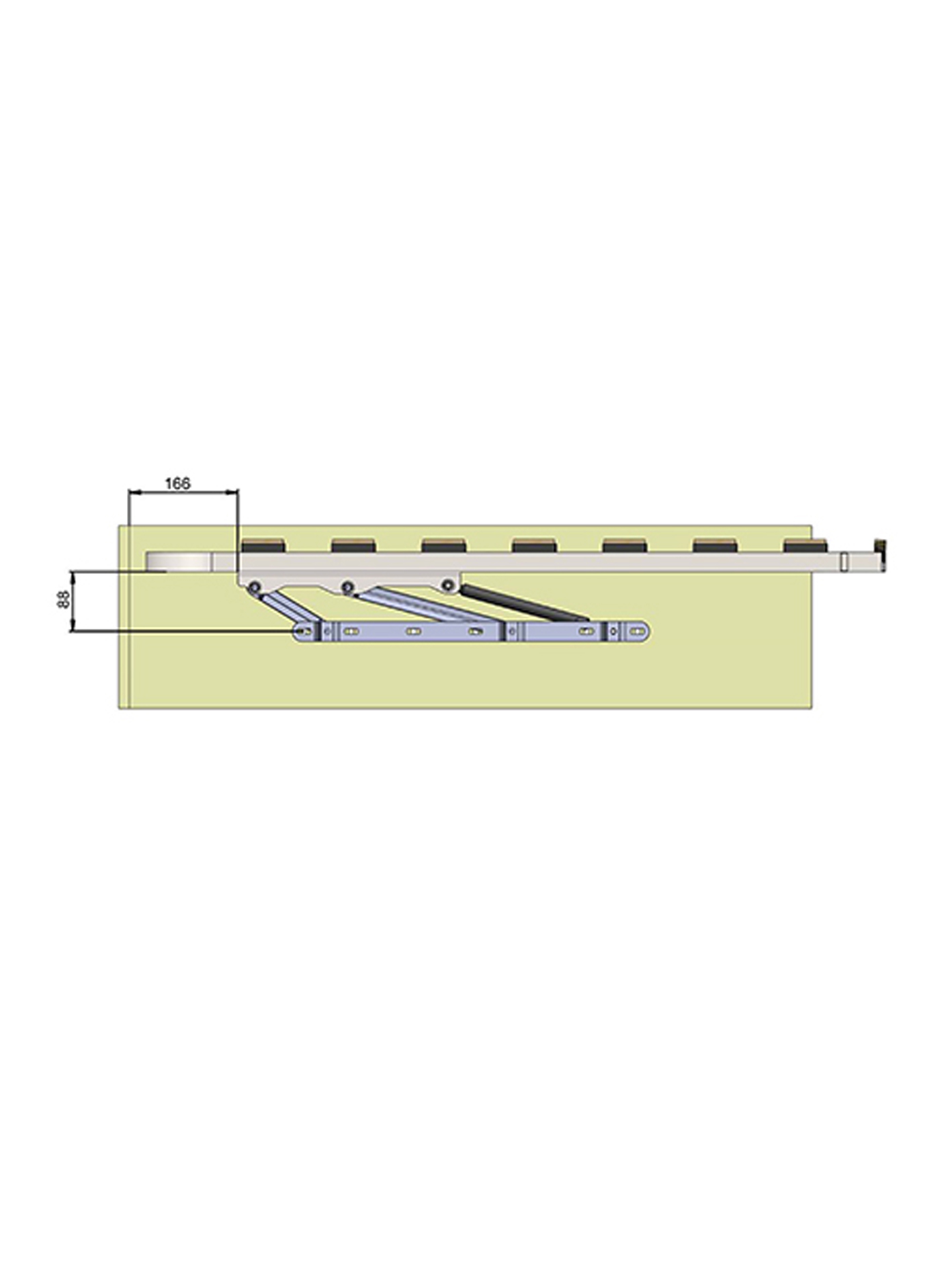 Механизм комплектуется двумя газлифтами длиной 460 мм и нагрузкой 1000 ньютон под шаровый шарнир на защелках. Лёгкая установка.