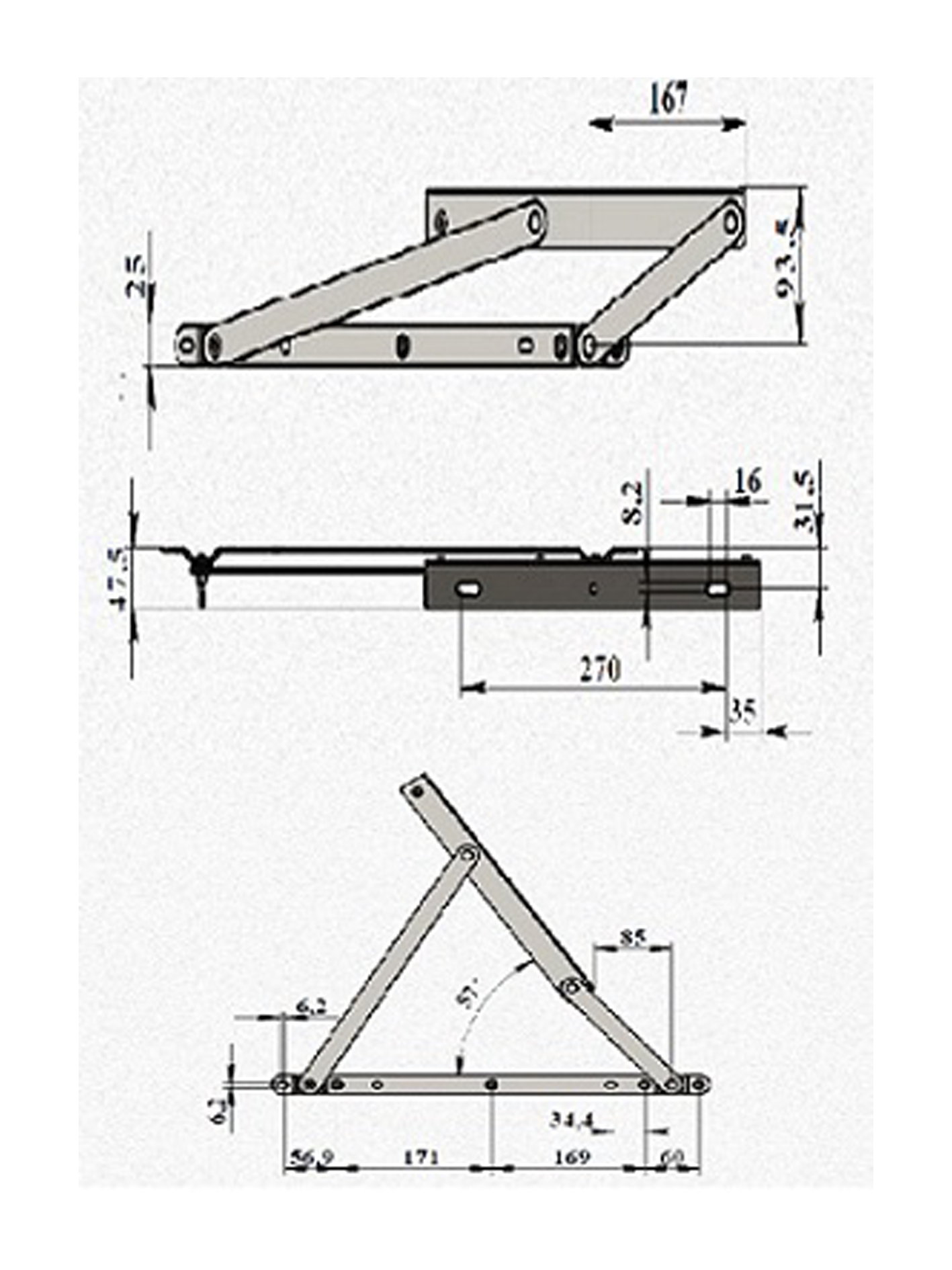 Позволяет поднять основание кровати или оттоманку дивана под углом 57 градусов.