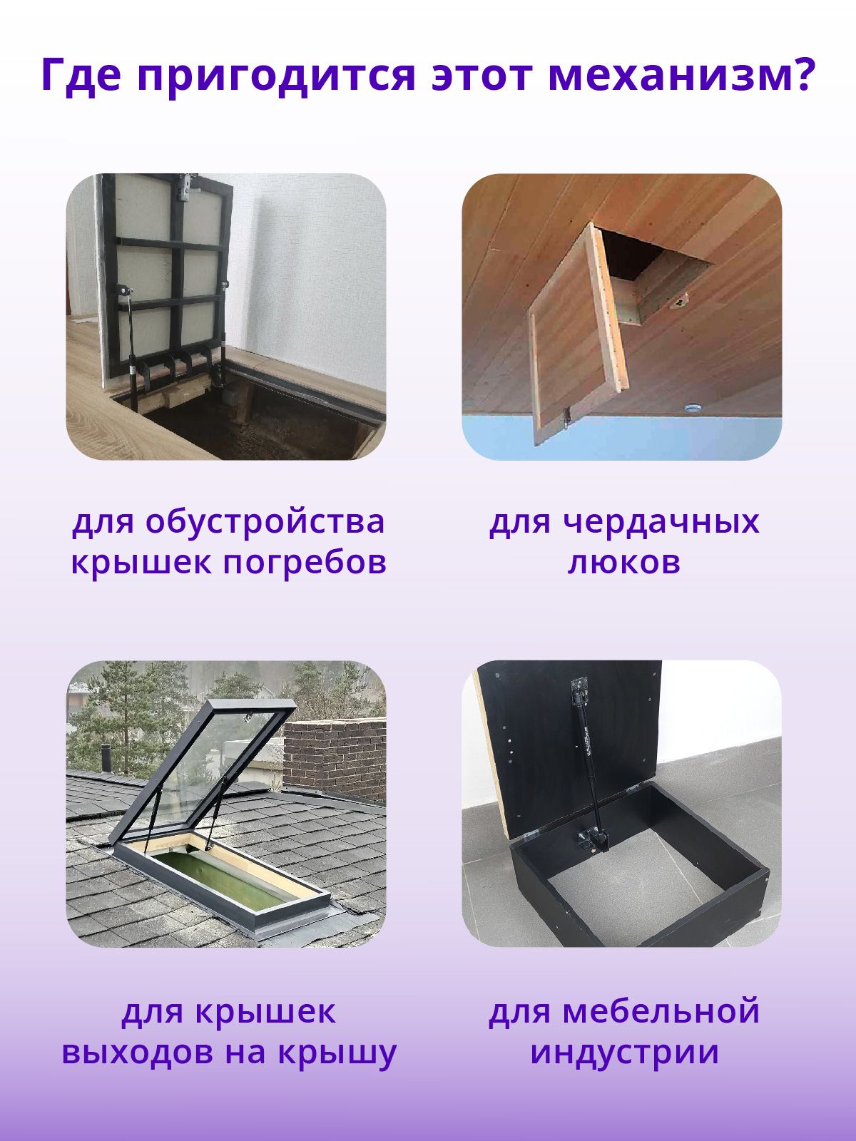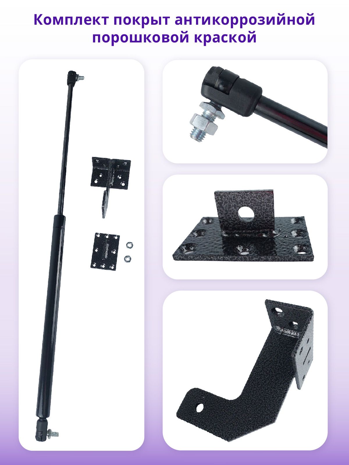 Газлифт 675 мм 300N и петли для крепления газлифта к крышке и коробу люка для её удобного и плавного открывания. Нагрузку газлифта вы можете рассчитать по формуле, приведенной во вкладках.