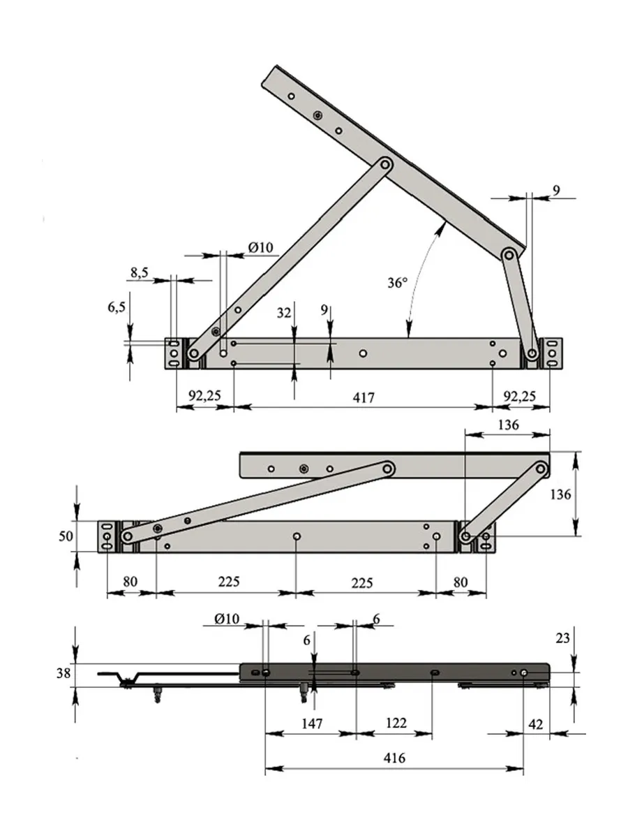 - Верхняя планка развернута Комплектуется отдельно газлифтами под гайку 2 шт (длина 385,405 мм).