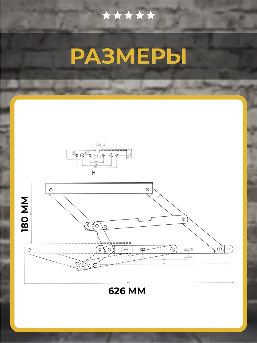 Мин. высота от пола до верха механизма в сложенном состоянии: 137,5 мм (min). Длина механизма с сложенном состоянии: 626 мм.