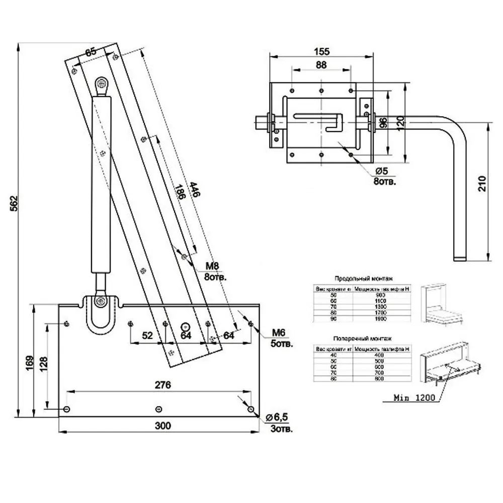 Важно правильно подбирать силу газовых пружин. Газлифты для механизма шкаф-кровать №582 бывают стянутые лентой и без ленты в открытом положении. При использовании газлифтов не стянутых лентой необходимо устанавливать их в механизм, когда положение каркаса кровати закрыто в шкаф.
