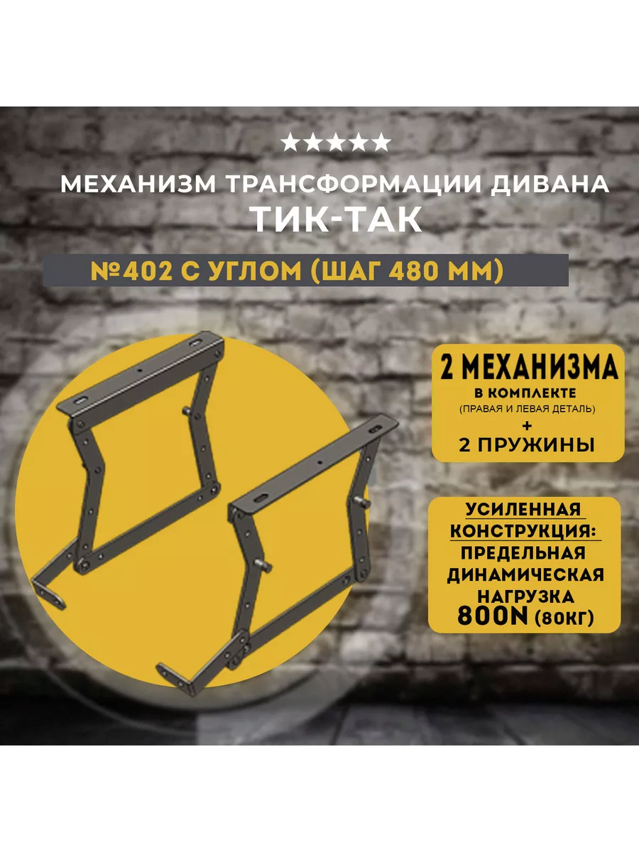 В комплекте к механизму (правой и левой части) поставляются 2 ПРУЖИНЫ L-143ММ;-24,6ММ 550Н. Механизм тик-так для мягкой мебели изготовлен из прочной стали до 4.5мм толщиной, покрытой порошковой краской - надежная защита от коррозии.