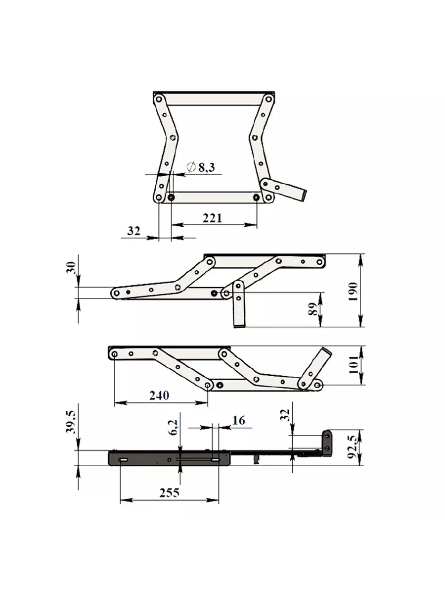 Возможна регулировка крепления на уголке механизма - до 16мм.