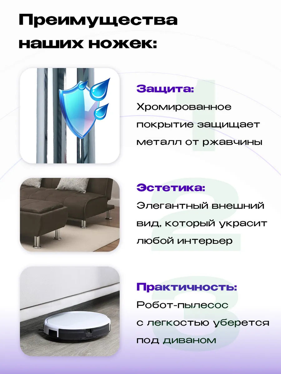 Нерегулируемая мебельная опора высотой 150 мм. Эти изящные хромированные опоры придадут вашей мебели стильный и завершенный облик. Визуально приподнимая предметы интерьера над полом, они создают ощущение легкости и воздушности. Благодаря сочетанию металла и пластика, эти ножки обеспечивают высокую прочность и устойчивость, сохраняя при этом бережное отношение к вашему напольному покрытию. С Mebelzap.ru ваша мебель прослужит долго, радуя вас каждый день!