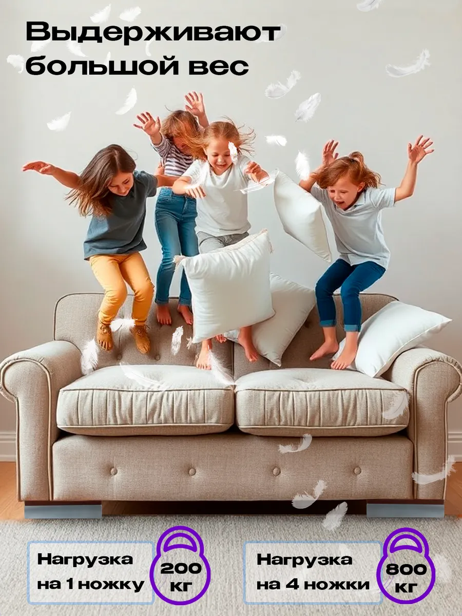 Каждая ножка выдерживает нагрузку до 200 кг, что делает её идеальным решением для укрепления различных предметов мебели. Вы можете быть уверены в надёжности и долговечности нашей продукции.