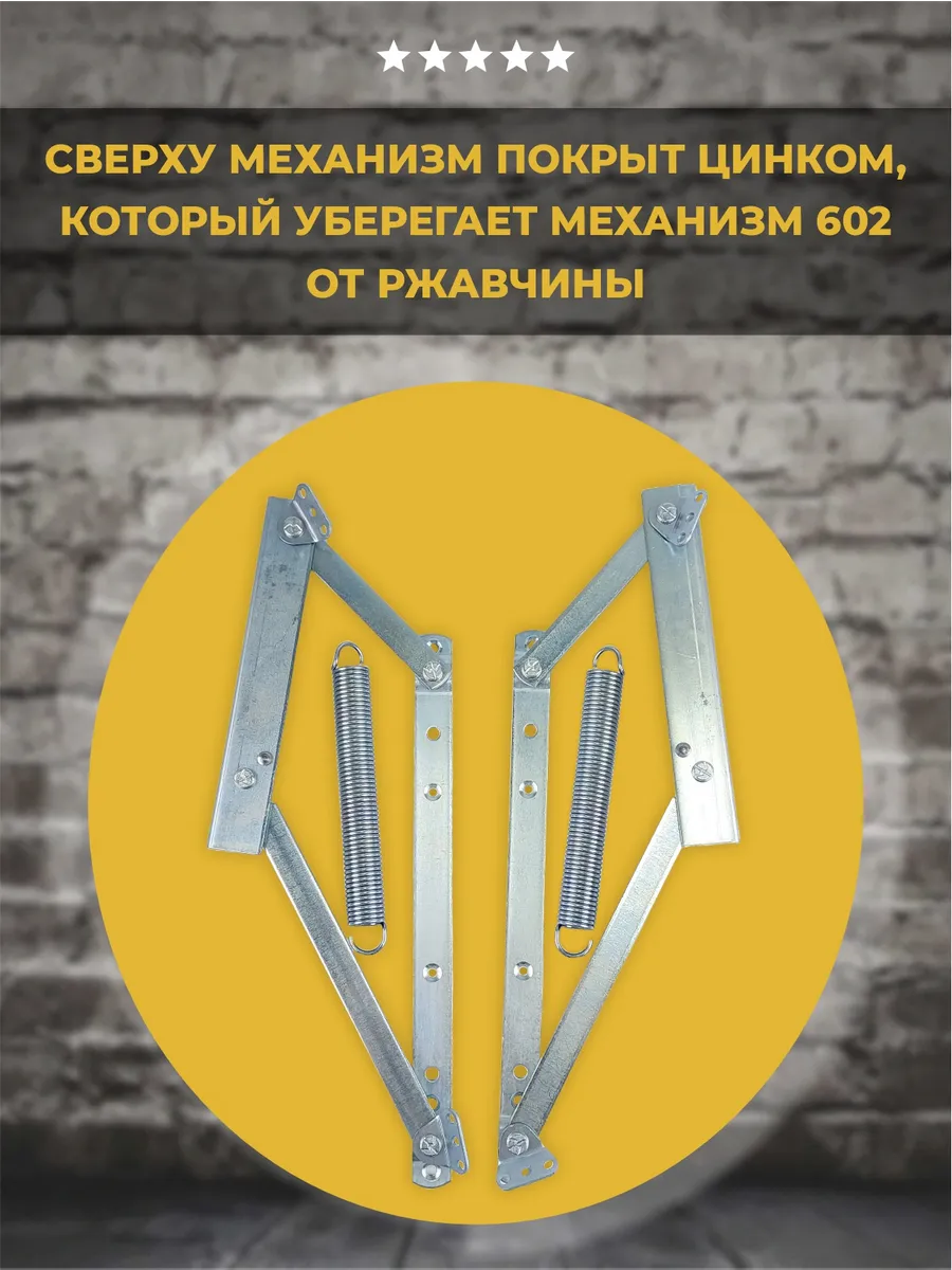 Детали сделаны из прочной и качественной стали на современном точном оборудовании. Сверху механизм покрыт цинком, который уберегает механизм 602 от ржавчины.
