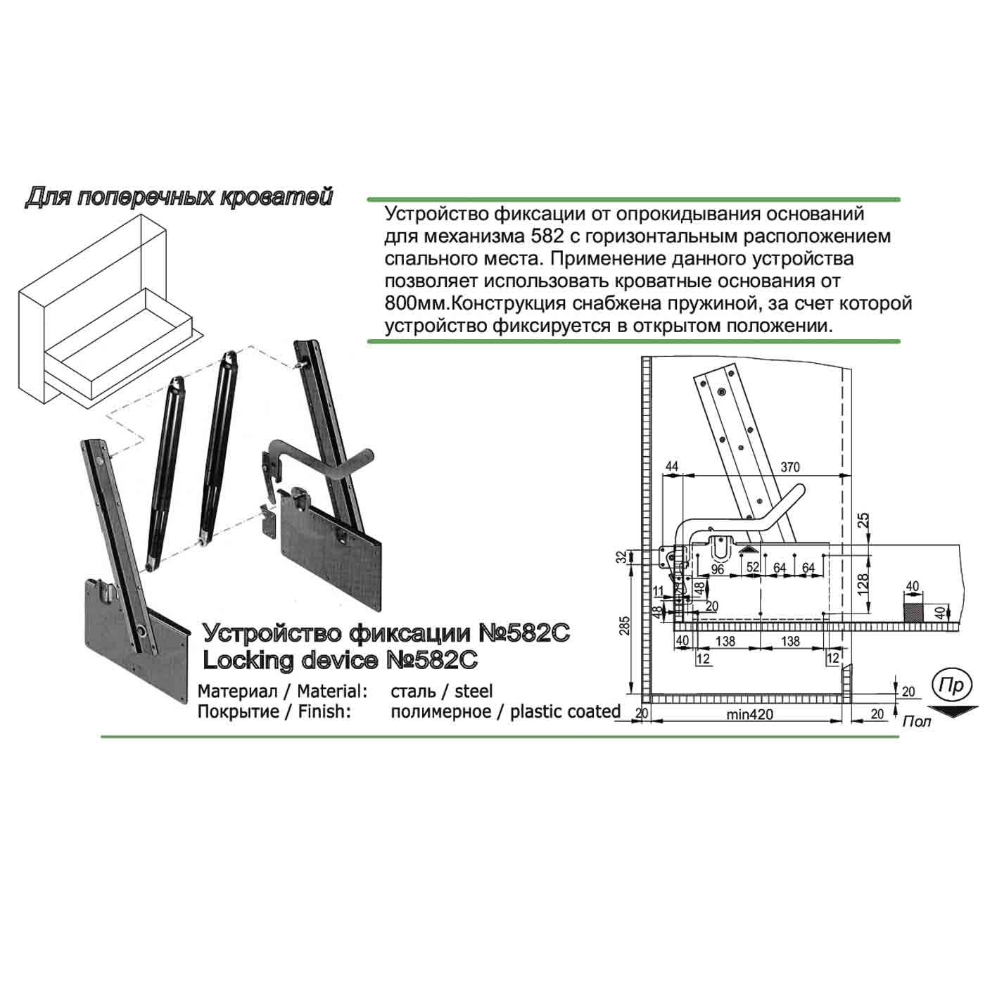 Стопор для механизма шкаф-кровать 582 предназначен для защиты от случайного подъема поперечных (горизонтальных) шкаф-кроватей.
